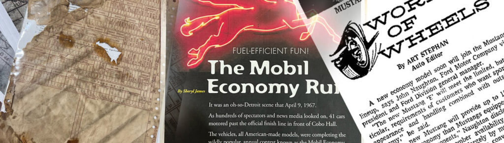 In 1968 the Mustang E had already been produced, and contrary to popular belief, the car did actually enter the Mobilgas Run. However, just 3 days after the event began with a departure from Anaheim, CA and a destination of New York, NY it was cancelled in Indianapolis due to widespread civil unrest after the assassination of Martin Luther King Jr., which took precedence on all forms of media while quickly washing away any coverage of the Mobilgas Economy Run.